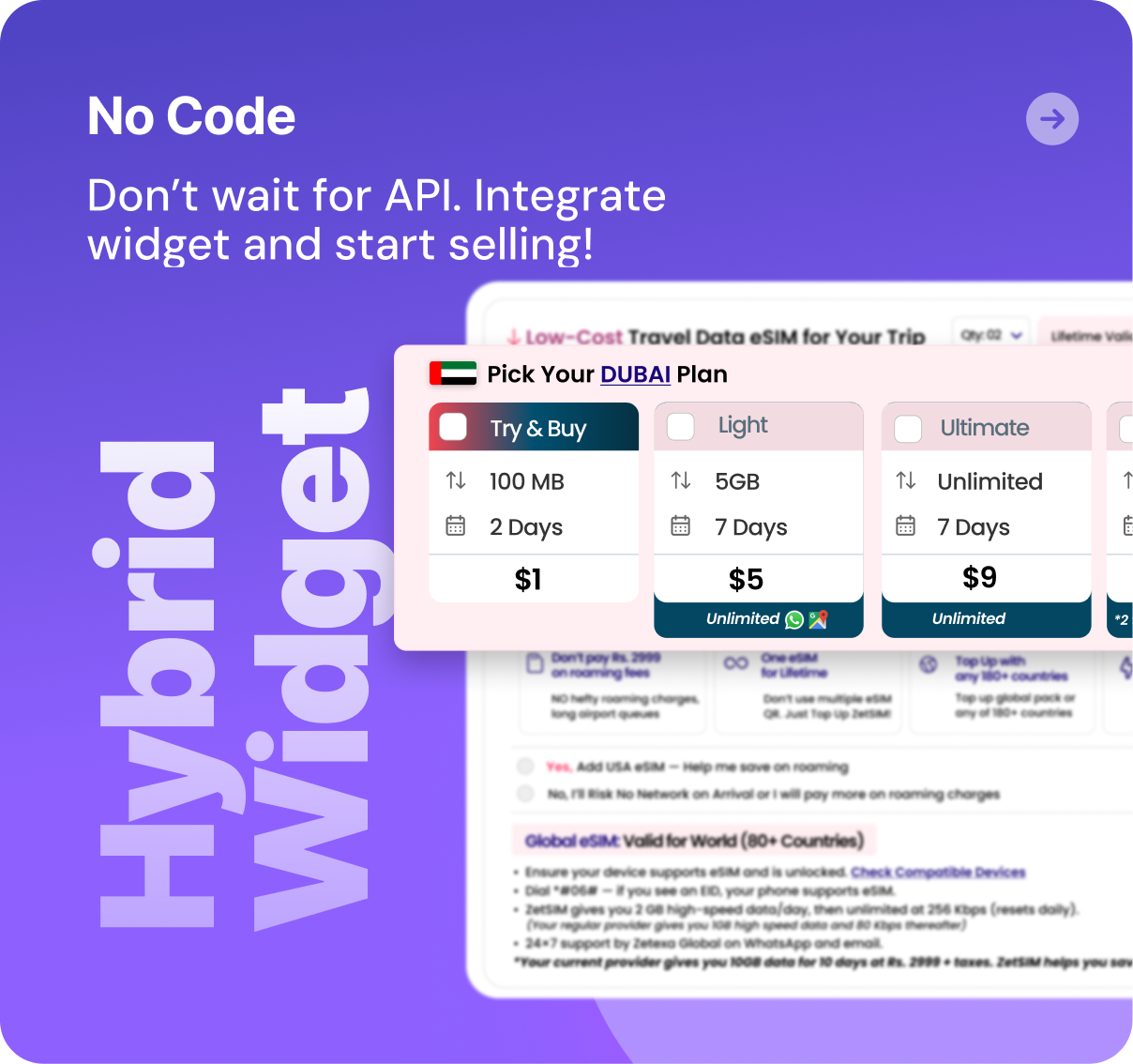 Don’t wait for full API integration. Get live quickly using our partner widget, easily embedded into your current website journey. As orders are placed, you can instantly issue eSIMs via our reseller portal. Go to market in days with our fast, plug-and-play widget integration.